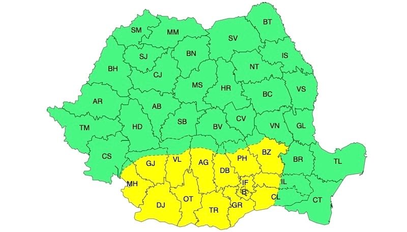 COD GALBEN - Interval de valabilitate: 23 decembrie, ora 20 – 25 decembrie, ora 10