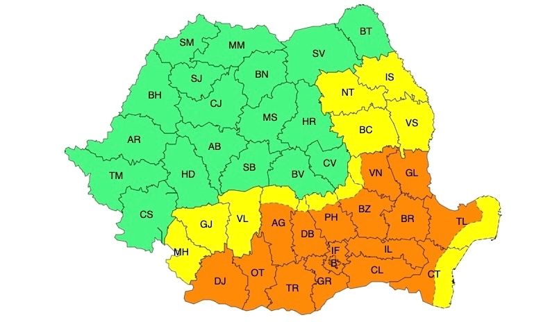 Administrația Națională de Meteorologie a emis noi avertizări cod galben și cod portocaliu de caniculă și disconfort termic ridicat.