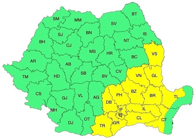 În Crișana, Banat, sudul Transilvaniei, Oltenia, Muntenia, Dobrogea continentală și în Moldova se vor înregistra temperaturi deosebit de ridicate pentru această dată, va fi caniculă și disconfort termic ridicat, iar indicele temperatură-umezeală (ITU) va depăși ușor pragul critic de 80 de unități.