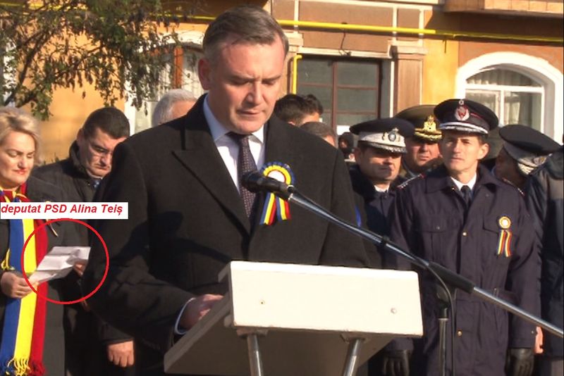Destul de plictisitoare, discursurile au fost citite de pe foi, cu mult aplomb. Imaginile de astăzi de la ceremonia premergătoare paradei de la Drobeta Turnu Severin sunt antologice.De departe, cei mai dependenți de foaia de hârtie au fost senatorul ALDE Ionuț Sibinescu și doamna deputat Alina Teiș.