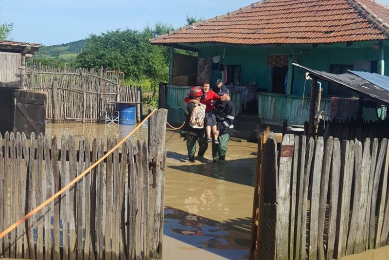 FOTO Pompierii intervin în mai multe localități din Mehedinți unde ploile au făcut prăpăd