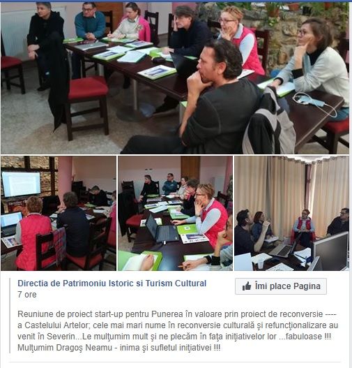 „Reuniune de proiect start-up pentru punerea în valoare prin proiect de reconversie a Castelului Artelor; cele mai mari nume în reconversie culturală şi refuncţionalizare au venit în Severin...Le mulţumim mult şi ne plecăm în faţa iniţiativelor lor ...fabuloase !!! Mulţumim Dragoş Neamu - inima şi sufletul iniţiativei!!!”,