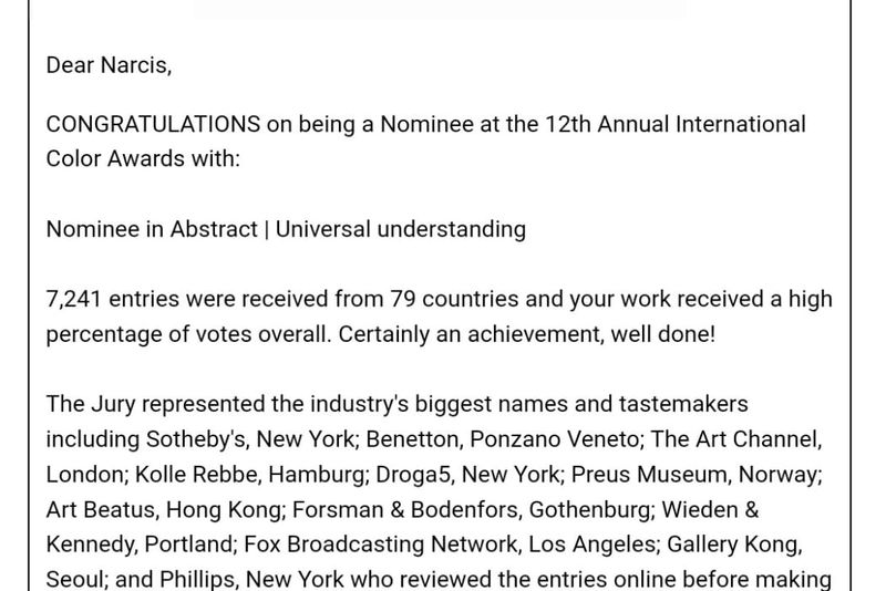 El s-a clasat printre finalişti la ediţia a XII-a a concursului de fotografie ”International Color Awards”, care a avut loc în Statele Unite ale Americii, fiind unul din cele mai cotate concursuri de fotografie color din lume.