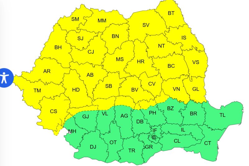 Avertizări cod galben în toată țara. Harta zonelor afectate de vremea extremă